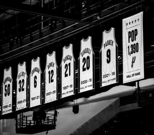 马刺球馆上空新增前主帅波波维奇的旗帜