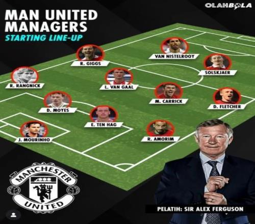 olahbolacom表示:“弗莱彻出任曼联临时主帅,这意味着球队在过去13年间已经换了11任主教练。有意思的是,若按照这些主帅球员时代的场上位置来排兵布阵,他们完全可以组成一套完整的442阵型首发。哦对了,唯独穆里尼奥是个例外。”