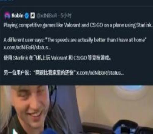 对此马斯克评价道:星链的延迟低到可以在飞机上玩FPS游戏了!